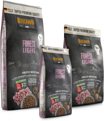 Finom, laktató és egészséges, köszönhetően a válogatott nyersanyagoknak. Az ízletes kacsahús és máj meghozza a kutya étvágyát. Az egészséges zab elősegíti a teltségérzetet és gazdag létfontosságú zsírsavakban, úgy mint a zsályamag, amely a kiváló emésztésről gondoskodik. A csökkentett fehérje- és zsírtartalomnak köszönhetően a BELCANDO® FINEST LIGHT  az alacsony aktivitású és  idős kutyák számára különösen ajánlott. Magas rosttartalma segít a testsúly megtartásában vagy csökkentésében miközben a kutya jóllakott. A foszfor és nátrium tartalom csökkentése tehermentesíti a veséket.