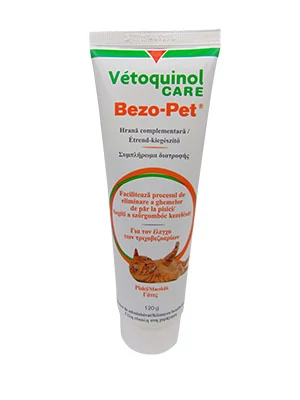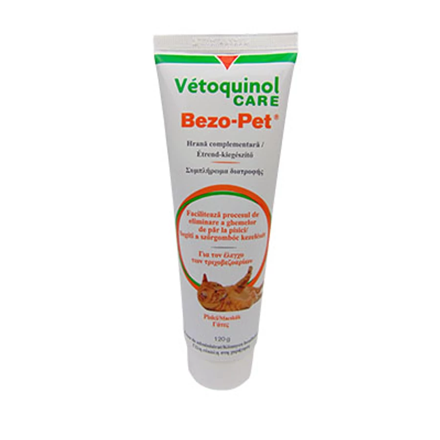 - A Bezo-Pet olajtartalmú paszta, a gyomorban keletkező szőrbezoárokat rendkívül síkos réteggel vonja be. A szőrbezoárok a gyomor- és bélcsatornát elzárhatják. Ha azonban eléggé síkosak, a perisztaltika átjuttatja őket a pyloruson és a bélcsatornán, így zavartalan lesz a tápanyagok átjutása, és megszűnik a nyálkahártyát izgató hatás.