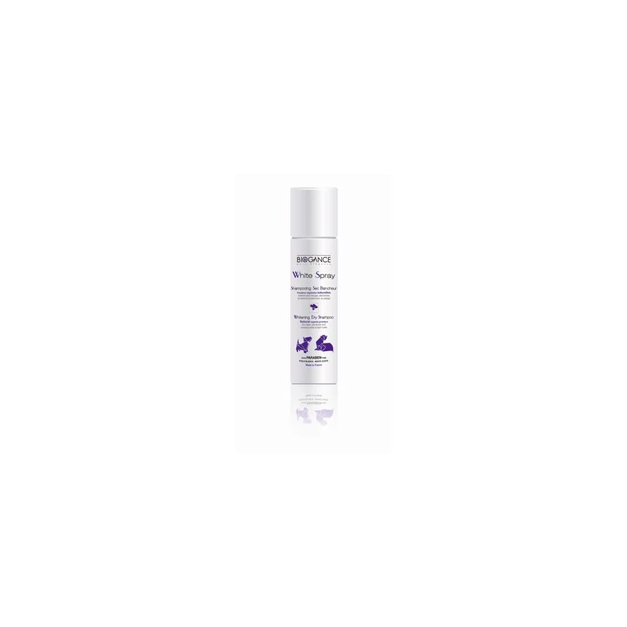 A fehérítő száraz sampon spray természetes növényi eredetű por, mely gyengéden és szárazan tisztít, dezodorál, kiemeli a fehér- és világos szőrzet árnyalatait. magába szívja a szennyeződéseket, a zsírt és a nedvességet. Ideális fürdetések közötti használatra minden bunda típusra. Nem szárítja, és nem irritálja a bőrt. parabén mentes.