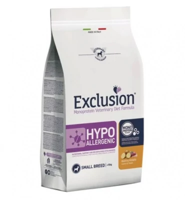 Teljes értékű diétás, egyfehérjés szárazeledel kacsa és burgonya felhasználásával táplálék-intoleranciával érintett kistestű (10 kg alatti) felnőtt kutyák számára