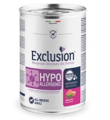 Teljes értékű, hipoallergén, diétás, egyfehérjés állateledel sertés és borsó felhasználásával táplálék-intoleranciával küzdő felnőtt kutyák számára