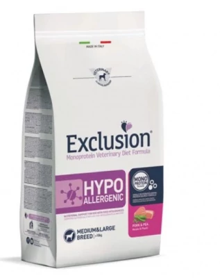 Teljes értékű diétás, egyfehérjés szárazeledel sertés és borsó felhasználásával táplálék-intoleranciával érintett közepes- és nagytestű (10 kg feletti) kutyák számára