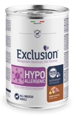 Teljes értékű, hipoallergén, diétás, egyfehérjés állateledel nyúl és burgonya felhasználásával táplálék-intoleranciával küzdő felnőtt kutyák számára