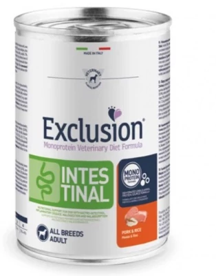 Teljes értékű diétás, egyfehérjés állateledel sertés és rizs felhasználásával emésztési problémákkal küzdő felnőtt kutyák számára