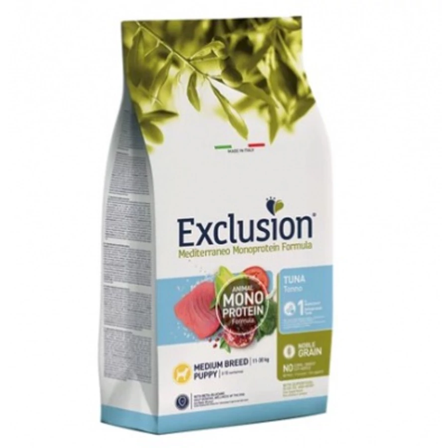 Exclusion Mediterraneo Monoprotein Formula – Noble Grain technológiával gyártva, melynek során az állati eredetű fehérjék dehidratálásra kerülnek, tovább csökkentve ezzel a táplálék-intolerancia kiütközésének kockázatát. Fő összetevője a tonhal mellett a borsó, paradicsom és a brokkoli, tartósítása pedig kizárólag természetes úton, olívaolajjal történik.