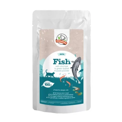 - 95% HALBÓL készült párolt menü 5% garnélarákkal, új-zélandi zöldkagylóporral és spirulinával gazdagítva.