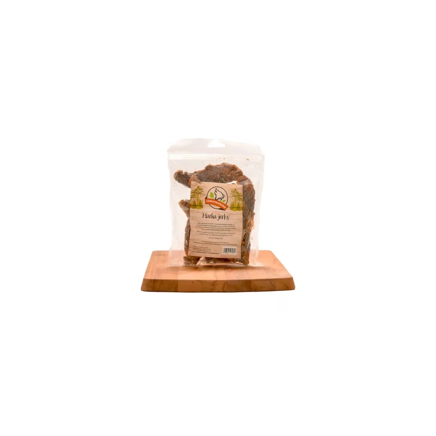 Egy 100 grammos csomagban körülbelül 5 db, egy 200 grammos csomagban 10 db marha jerky van.