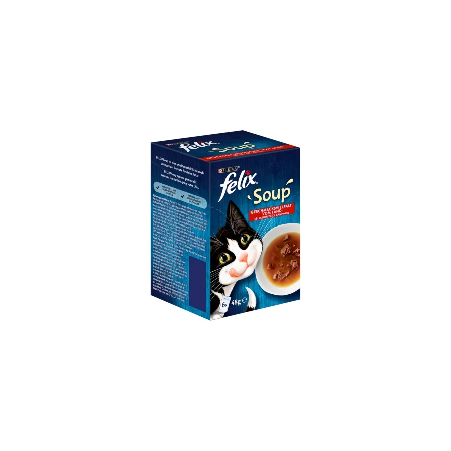 - A Felix Soup tálalásra kész tasakjai olyan kiszerelésűek, hogy bármilyen napszakban tökéletes energiaforrást jelentenek macskája csintalanságához, és Ön nyugodt szívvel etetheti, mivel nem tartalmaz hozzáadott mesterséges színezékeket, ízesítőanyagokat vagy tartósítószereket.