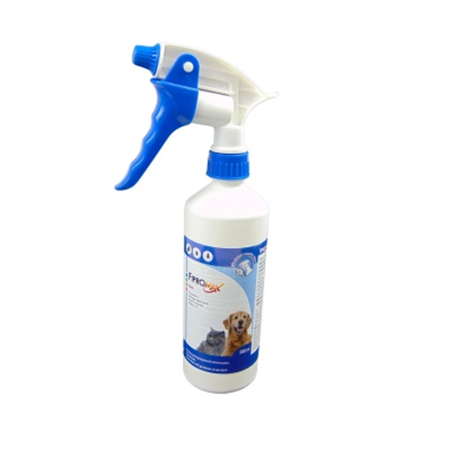 Alkalmazás módja: külsőleg.Az ajánlott dózis 3 - 6 ml FIPROMAX/ttkg (7,5 - 15 mg fipronil/ttkg), ami 10-20 pumpálást jelent a 100 ml-es, illetve 1-2 pumpálást a 250 ml-es és az 500 ml-es flakonból testtömeg kilogrammonként.A készítmény kutyákon és macskákon kullancs ellen 35 napig, kutyákon bolhák ellen 91 napig, macskákon bolhák ellen 60 napig véd, függően a környezet fertözöttségétől.A fej és környékének kezelésekor permetezzük a készítményt a gumi kesztyűs kezünkbe és dörzsöljük be finoman a szőrbe. Hagyjuk megszáradni az állatot letörlés nélkül.A termék bevonatképző anyagot is tartalmaz, ami a bundán filmréteget képez és a szőrt fényessé teszi. Vizsgálatok hiányában a két kezelés közötti javasolt minimális idő 4 hét.El kell kerülni, hogy a készítmény az állat szemébe vagy szájába jusson.Fontos a pontos adagolás betartása.