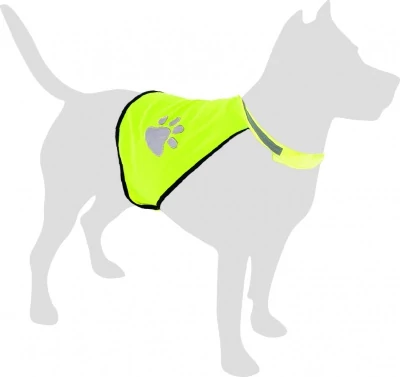 - Fluoreszkáló biztonsági mellény, amely fényvisszaverő csíkjai és mancs mintái biztosítják, hogy kutyája jól látszódjon a sötétben.