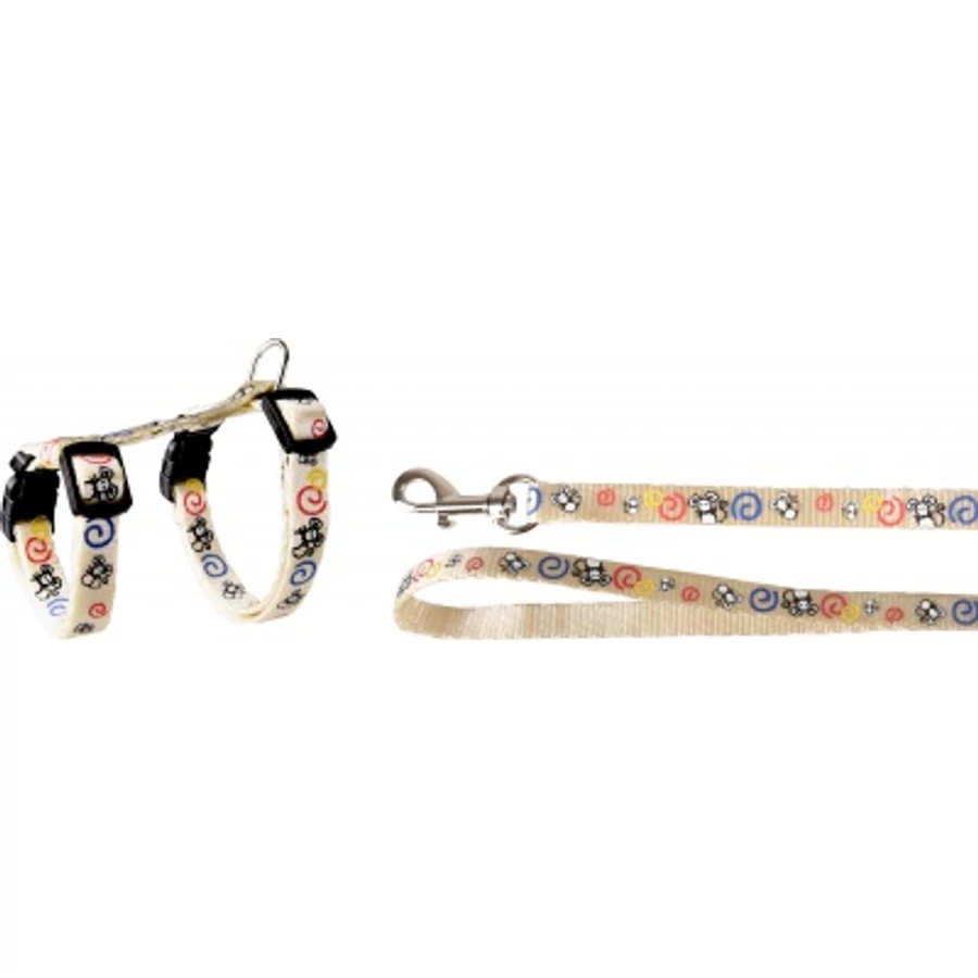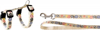 - Hevedercsattal felszerelt hám és karabíneres póráz.