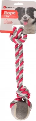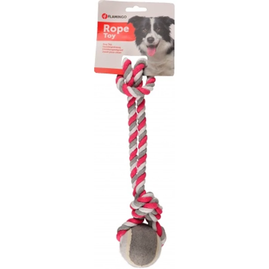 - Teniszlabdával felszerelt, menta/szürke/fehér színű, pamut rágókötél kutyáknak.