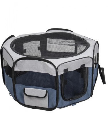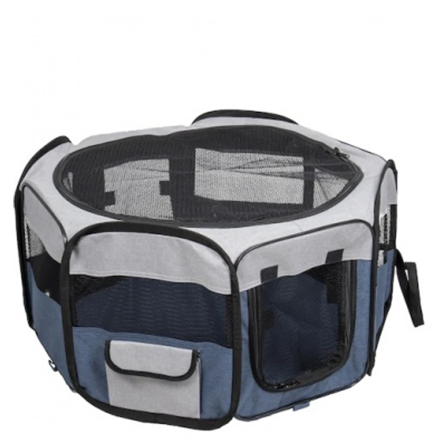 - Oldalsó ajtaja cipzárral záródik. - Hálós teteje - amely megakadályozza, hogy az állat kiugorjon belőle, vagy hogy más állatok belemásszanak - lecipzárolható. - Az alja levehető (tépőzárral van rögzítve). - Könnyen felállítható. - Összecsukható, így könnyen tárolható. - Kis súlyának és a hozzá tartozó hordozótáskának köszönhetően könnyű a szállítása. - Erős poliészterből készült. - Kültéri és beltéri használatra egyaránt alkalmas. - Oldalán tárolózsebek kerültek kialakításra. - Oldalára rágcsáló itató rögzíthető. - Kültéri használat esetén a sátorcövekekkel a talajhoz rögzíthető. - Könnyen tisztítható.