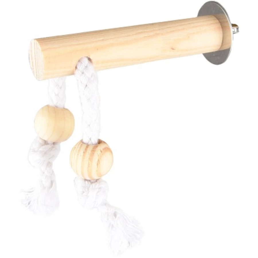 Fából készült ülőrúd kötéllel és golyókkal kalitkában tartott madarak számára