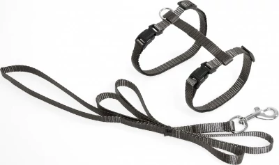 - A hám kattanós csattal és a póráz karabinerrel rendelkezik
