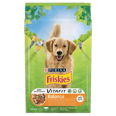 - A Purina® Friskies® Balance ízletes receptúra csirke és marha ízletes keverékével és zöldségekkel, teljes kiőrlésű gabonával, B-vitaminokkal és Omega-3 és -6 zsírsavakkal. A Friskies® Balance minőségi fehérjék és minden szükséges tápanyag forrása az Ön kutyája igényeinek megfelelően, hogy boldog és egészséges életet élhessen a családban.