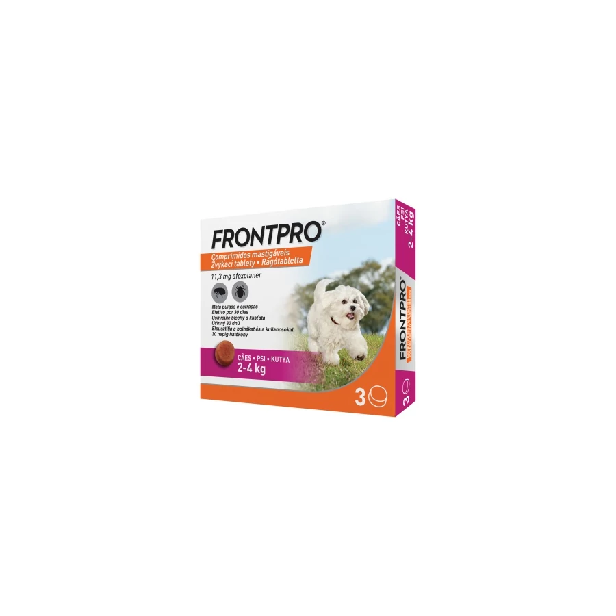 A FRONTPRO® gyorsan hat és a hatóanyag felszívódása után magas fokú a hatékonysága. Egy tabletta bolhák ellen 5 hetes védelmet, kullancsok ellen pedig 4 hetes védelmet biztosít kutyádnak (a bolháknak és kullancsoknak meg kell telepedniük a gazdán és el kell kezdeniük táplálkozni ahhoz, hogy a hatóanyag kifejtse hatását).