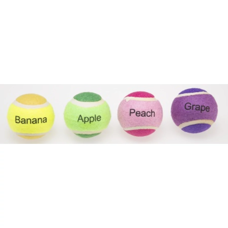 - A labdák tökéletesek apportírozáshoz, rágcsáláshoz vagy kergetéshez. - Feltűnő színük és különleges ízük stimulálj a kutya érzékszerveit. - A csomag 4 db különböző ízesítésű teniszlabdád tartalmaz. - Többféle ízesítésű csomag kapható: * banán, alma, barack, szőlő * menta, mogyoróvaj, csokoládé, vanília