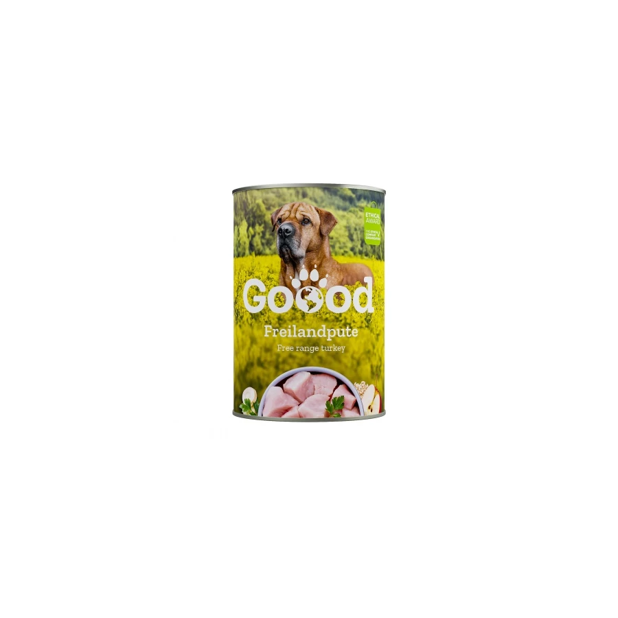 A konzervben található pulykahús zsírszegény és különösen lédús, mivel fajnak megfelelő, szabadtartású farmról származik. Az árpa és a paszternák bajor régiónkban kerül termesztésre. A pulykahús és paszternák nagyon jó hatással vannak az emésztésre és az anyagcserére. Goood konzervünk magas minőségű hozzávalókból készül, így négylábú barátodat ellátja minden fontos tápanyaggal.Magas minőségű teljes kiőrlésű gabonával. Nem tartalmaz mesterséges színezéket, ízfokozót vagy tartósítószert. Hozzáadott cukor nélkül.