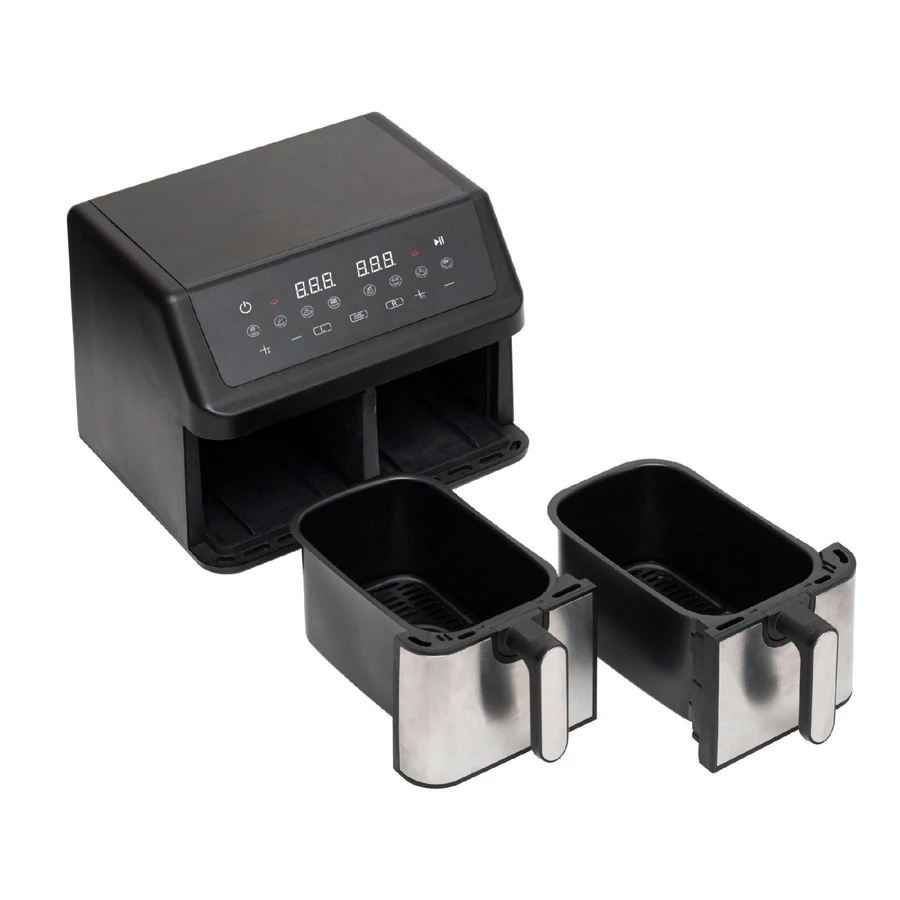 Hogyan lehet egyszerre két különböző ételt is egészségesen, olaj nélkül megsütni – ráadásul úgy, hogy mindkettő pont egyszerre készüljön el? A HOME HGAF29 duplakosaras forrólevegős sütő pontosan erre a kérdésre kínál innovatív megoldást. Ez a modern konyhai eszköz nemcsak időt takarít meg, de lehetőséget ad arra is, hogy gyorsan, egyszerűen és zsiradék hozzáadása nélkül készüljenek el a ropogós, ízletes fogások – akár két külön kosárban, eltérő beállításokkal. Két kosár, dupla lehetőség A 2 x 4,5 literes kapacitás lehetővé teszi, hogy akár egy egész család részére is elegendő ételt süssön egyszerre. A két kosár egymástól függetlenül is használható, így akár különböző alapanyagokat, eltérő hőfokon és időtartamban is elkészíthet – a SYNC FINISH funkciónak köszönhetően mégis pontosan egyszerre kerülhetnek az asztalra. Okos vezérlés, egyszerű működés A digitális kijelző és az intuitív kezelőfelület megkönnyíti a használatot. Az állítható hőmérséklet és hátralévő idő segítségével bármikor módosíthatók a beállítások a tökéletes eredmény érdekében. A nyolcféle előre beállított üzemmód – hasábburgonya, csirkeszárny, hal, baconszalonna, pirítás, sütés, zöldségek és aszalás – gyors és pontos vezérlést biztosít még a kezdő szakácsok számára is. Praktikus méret, modern dizájn A készülék kompakt, de stabil kialakítása (méret: 37,5 × 31 × 39 cm, tömeg: 7,4 kg) minden konyhapulton jól elfér, mégis bőséges sütőkapacitást biztosít. A 2000 W teljesítmény garantálja, hogy minden fogás gyorsan és egyenletesen készüljön el, miközben az étel megőrzi természetes ízét és állagát. Miért érdemes a HOME HGAF29 forrólevegős sütőt választani? - Két különálló kosár, külön kezelhető hőfokkal és időzítéssel - SYNC FINISH funkció: az eltérő beállítások ellenére egyszerre elkészülő ételek - 8-féle program: minden népszerű fogáshoz előre beállított sütési mód - Digitális vezérlés: könnyű kezelhetőség és pontos beállítások - Egészséges főzés – olaj nélkül, gyorsan, ízletesen Fedezze fel az egészséges és hatékony sütés élményét a HOME HGAF29 duplakosaras forrólevegős sütővel – és varázsoljon pillanatok alatt ízletes, ropogós fogásokat otthonában!