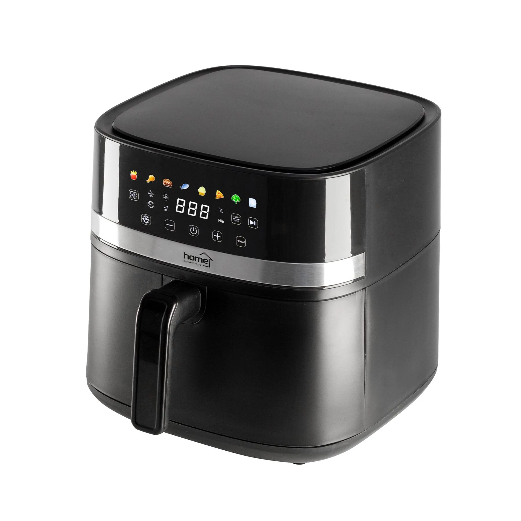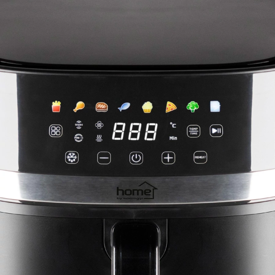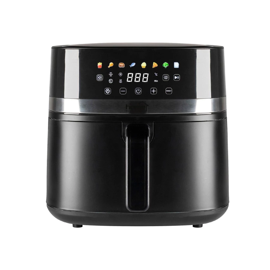 Szeretné, ha otthonában egészséges, ízletes ételek készülnének minimális olajhasználattal? A Home HGAF8 digitális forrólevegős fritőz minden igényt kielégít, amire a modern konyhában szüksége lehet. A 8 literes kapacitásának és a 2000 W teljesítményének köszönhetően nagyobb adagokat készíthet egyetlen sütés során, legyen szó ropogós sült krumpliról, ízletes csirkecombról vagy zöldségekről. A DUAL HEATING technológia biztosítja a tökéletes, egyenletes sütést: 500 W-os alsó és 1500 W-os felső fűtőelemek gondoskodnak arról, hogy minden étel tökéletesen átsüljön. A fém borítású sütőtér növeli a készülék tartósságát, míg a LED érintőpaneles digitális vezérlés lehetővé teszi, hogy gyorsan és egyszerűen válasszon a 8 előre beállított sütési program közül: hasábburgonya, csirkecomb, steak, hal, sütemény, pizza, zöldség vagy egyéni beállítás. Mindegyik program hőmérséklete és sütési ideje módosítható és elmenthető, így Ön pontosan az ízlésének megfelelően készítheti el az ételeket. A Home HGAF8 fritőz emellett kiolvasztás és újramelegítés funkcióval is rendelkezik, így akár maradék ételeket is gyorsan és hatékonyan felmelegíthet. Az előmelegítő funkció segít a gyors indulásban, és az ételátforgatásra figyelmeztető jelzés biztosítja, hogy minden oldal tökéletesen átsüljön. Működés közben a hőmérséklet és a hátralévő idő bármikor módosítható, így Ön mindig pontosan szabályozhatja a sütési folyamatot. A készülék könnyen kezelhető, és a levehető fogantyú révén kompakt módon tárolható. Mérete 32,5 x 32 x 41 cm, tömege 6,6 kg, így könnyedén helyet találhat neki a konyhapulton. Tegye az egészséges ételkészítést egyszerűvé és élvezetessé a Home HGAF8 digitális air fryerrel!