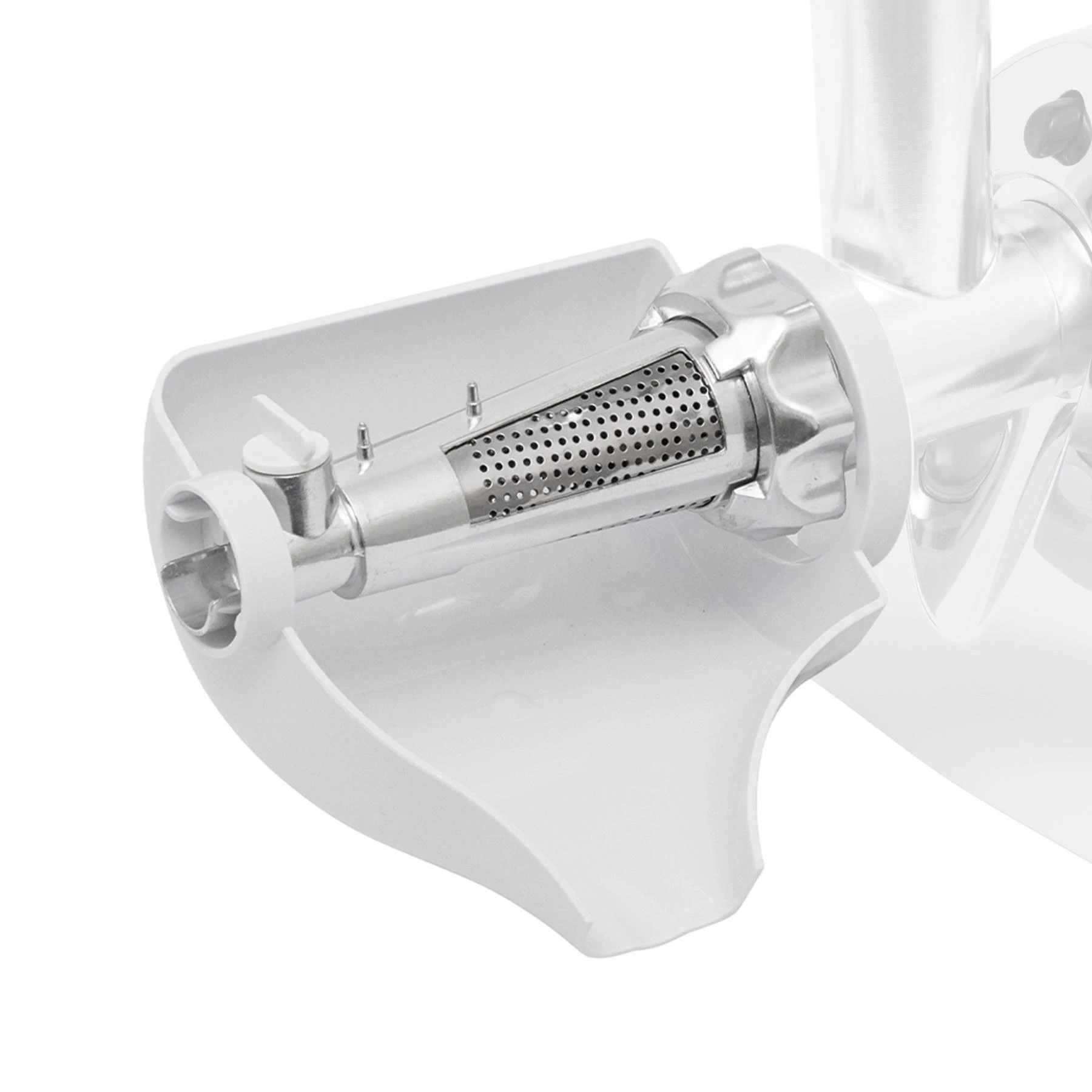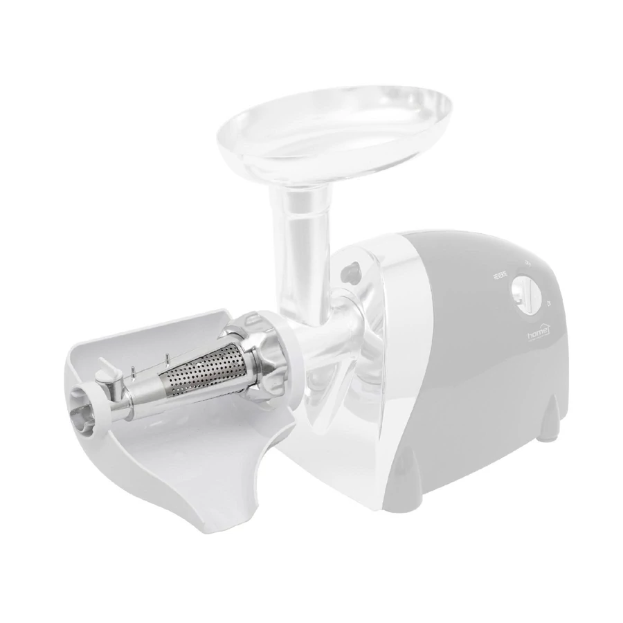 Hogyan készíthet ízletes, adalékmentes paradicsomszószt vagy gyümölcspürét gyorsan és hatékonyan otthon? A HOME HGHD1200PP paradicsom passzírozó ideális kiegészítője a HOME HGHD1200 húsdaráló készüléknek, amely lehetővé teszi, hogy a friss alapanyagokat könnyedén átalakítsa selymes állagú pürévé – legyen szó paradicsomról, bogyós gyümölcsökről vagy akár házi bébiételekről. Tökéletes illeszkedés, egyszerű használat Ez a speciálisan a HGHD1200 húsdarálóhoz tervezett tartozék egyszerűen csatlakoztatható a már meglévő készülékhez, így nincs szükség új gép vásárlására. A passzírozó kialakítása kifejezetten olyan felhasználóknak szól, akik szeretik a házi ízeket, és szeretnék elkerülni a boltban kapható, tartósítószerekkel teli termékeket. Sokoldalú pürésítési lehetőségek Nem csupán paradicsomhoz kiváló: a HOME HGHD1200PP passzírozó segítségével készíthet sűrű gyümölcsleveket, szószokat, lekvárok alapját vagy akár házi bébiételeket is. A mechanizmus kíméletes a gyümölcshús kezelésében, így megőrzi a természetes zamatokat és tápanyagokat. Egyszerű tisztítás, higiénikus működés A könnyen szétszedhető alkatrészeknek köszönhetően a passzírozó tisztítása nem igényel különösebb erőfeszítést. A felhasznált anyagok megfelelnek az élelmiszerrel való érintkezésre vonatkozó előírásoknak, így biztonságos és higiénikus használatot garantálnak minden alkalommal. Miért érdemes a HOME HGHD1200PP paradicsom passzírozót választani? - Tökéletesen kompatibilis a HOME HGHD1200 húsdarálóval - Alkalmas paradicsom és egyéb lédús gyümölcsök pürésítésére - Otthoni felhasználásra, friss és egészséges szószok, pürék készítéséhez - Egyszerűen használható és könnyen tisztítható kialakítás - Megbízható, tartós, praktikus konyhai tartozék Fedezze fel a házi paradicsomszósz és gyümölcspürék készítésének örömét, és alakítsa konyháját egy valódi gasztronómiai műhellyé! A HOME HGHD1200PP paradicsom passzírozóval egészséges, friss alapanyagokból készíthet ízletes ételeket – pontosan úgy, ahogyan Ön szereti.