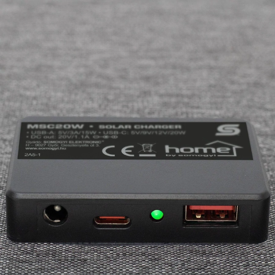 Hogyan gondoskodhat készülékei gyors és környezetbarát töltéséről, akár útközben is? A HOME MSC20W hordozható napelemes USB töltő egy innovatív, energiatakarékos megoldás, amely lehetővé teszi, hogy bárhol és bármikor feltöltse eszközeit. A 20 W teljesítményű napelem cellák kiváló energiaátalakítást biztosítanak, miközben három különféle kimeneti csatlakozónak (USB-A, USB-C és DC) köszönhetően egyszerre akár három eszköz töltésére is alkalmas. Az ETFE textil laminált technológia stabil és tartós kialakítást garantál, így a töltő hosszú távú és megbízható megoldást kínál. Széles körű kompatibilitás, gyors töltési lehetőségek A HOME MSC20W napelemes töltő univerzális kialakítása révén számos készülék energiaellátására alkalmas. Ideális az alábbi eszközökhöz: okostelefonok, táblagépek, notebookok, power bankok, lámpák, hangszórók és fülhallgatók A töltő USB-A, USB-C (PD gyorstöltés) és DC aljzatokkal van felszerelve, amelyek különböző töltési opciókat kínálnak. Az akár 20 W teljesítmény és a 5V/9V/12V kimeneti feszültség garantálja, hogy készülékei gyorsan és hatékonyan tölthetők. Környezetbarát megoldás a modern technológiának köszönhetően Ez a töltő kizárólag a nap energiáját használja, így teljesen környezetbarát megoldást nyújt. Az ETFE laminált technológia előnyei: – Hatékonyabb energiaátalakítás a monokristályos napelemekkel – Hosszú élettartam és ellenállás a környezeti hatásokkal szemben – Öntisztító hatású felület és jobb hőleadás A töltő nem tartalmaz beépített akkumulátort, így karbantartásmentes, és mindig készen áll a használatra. Kompakt, hordozható és praktikus kialakítás Az összecsukható és hordozható dizájn helytakarékos megoldást kínál, amely könnyedén szállítható akár hátizsákban is. A gyűrűkkel felakasztható kivitel lehetővé teszi, hogy a töltőt sátorra, táskára vagy más felületre rögzítse. A csomag tartalmaz két rugós karabinert, amelyek segítségével gyorsan és biztonságosan rögzíthető. Miért válassza a HOME MSC20W napelemes USB töltőt? – Három eszköz egyidejű töltése (USB-A, USB-C, DC kimenetekkel) – Gyors és hatékony energiaellátás akár 20 W teljesítménnyel – Környezetbarát, fenntartható megoldás a napenergia használatával – Tartós és strapabíró ETFE laminált technológia – Kompakt, összecsukható dizájn a könnyű hordozhatóságért – Praktikus rögzítési lehetőségek a tartozék karabinerekkel A HOME MSC20W hordozható napelemes töltővel mindig lesz energiája, bárhová is induljon! Válassza ezt a modern, fenntartható megoldást, hogy készülékei mindig készen álljanak, Ön pedig élvezhesse a napenergia előnyeit, környezetbarát módon.