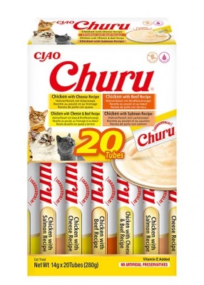 A Ciao Churu magas nedvességtartalommal rendelkezik, hogy a macskák egészségesek maradjanak. Hozzáadott E-vitaminnal, hogy támogassa macskája immunrendszerét, és zöld-tea kivonattal, mint természetes antioxidánssal. Minden ízletes, krémes Churu tubus 88% nedvességet és mindössze 6 kalóriát tartalmaz (a hagyományos száraz macskacsemege kalóriájának egytizedét), ami egészséges nassolássá teszi, hogy macskája jól érezhesse magát minden etetésekor.