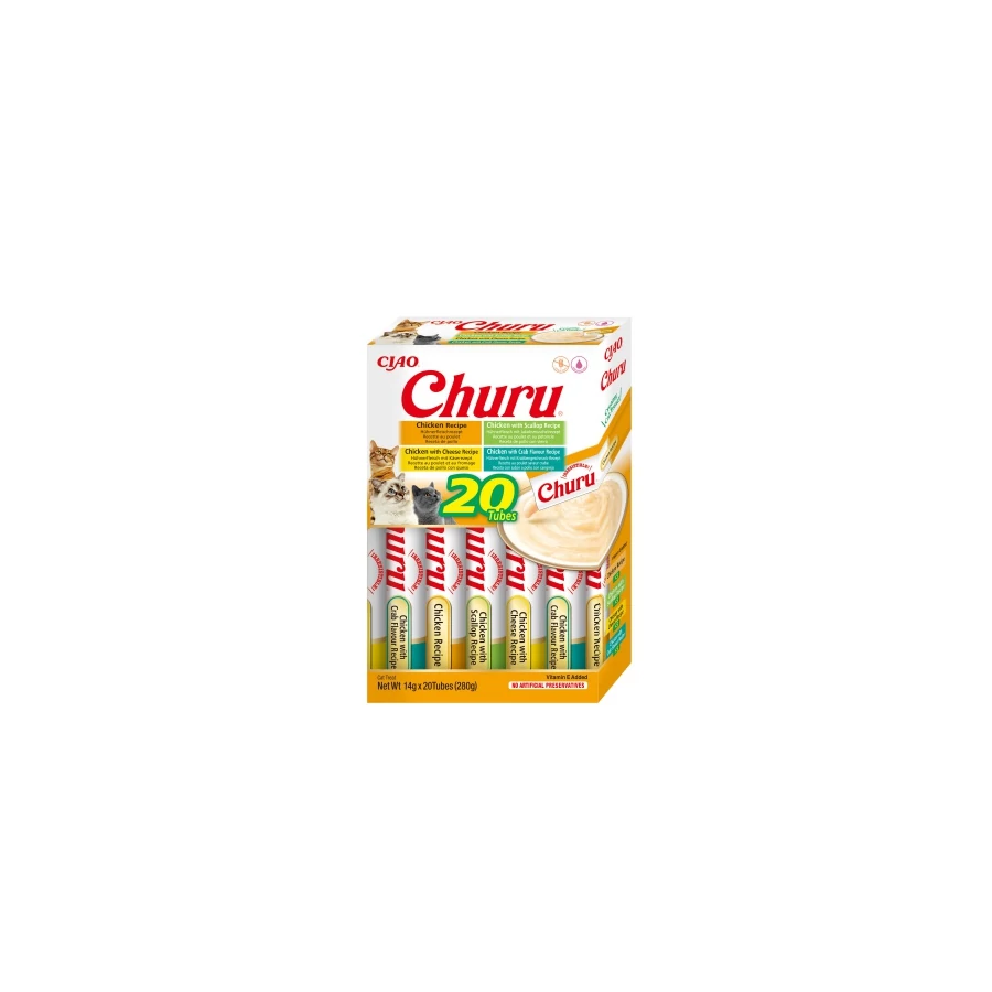 A Ciao Churu magas nedvességtartalommal rendelkezik, hogy a macskák egészségesek maradjanak. Hozzáadott E-vitaminnal, hogy támogassa macskája immunrendszerét, és zöld-tea kivonattal, mint természetes antioxidánssal. Minden ízletes, krémes Churu tubus 88% nedvességet és mindössze 6 kalóriát tartalmaz (a hagyományos száraz macskacsemege kalóriájának egytizedét), ami egészséges nassolássá teszi, hogy macskája jól érezhesse magát minden etetésekor.