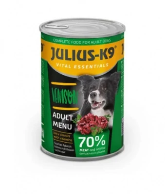 A JULIUS-K9 Venison egy prémium minőségű kutyakonzerv, mely ízletes szarvashússal és gazdag mártással kényezteti kedvencét – tökéletes választás lehet a természetes húsízek kedvelőinek.