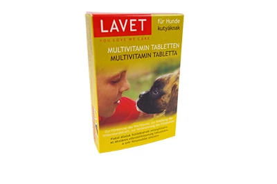 A LAVET multivitamin tabletták állatorvosok által fejlesztett, természetes eredetű, a szervezet számára nélkülözhetetlen anyagokat tartalmazó táplálék kiegészítők. A LAVET MULTIVITAMIN tabletta kutyának a vonatkozó táplálkozás-élettani és gyógyszertani ismeretek alapján összeállított készítmény, amely a tej és a szárított élesztő magas biológiai értékő természetes alkotórészeit, valamint nagyszámú hozzáadott életfontosságú vitamint és mikroelemet biztosít kedvenceink optimális táplálásához. Ezáltal a termék a fiatal állatok fejlődésének elősegítésére, a betegségekkel szembeni ellenálló képesség növelésére, a vemhesség és szoptatás alatt megnövekedett vitamin- és mikroelem-szükséglet fedezésére, a kifejlett kutyák közérzetének javítására, stressz helyzetekben (kiállítás, utazás, stb.) a terhelhetıség fokozására, valamint betegségek után a felépülés gyorsítására szolgál.