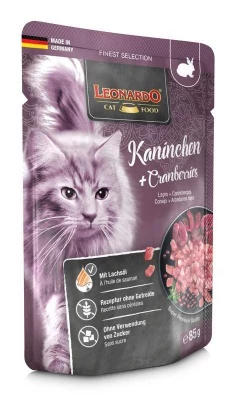 Nyúlhús, szív, máj, tüdő, vese (30 %); Csirkehús, máj, szív (30 %); Nyúl-, csirke-, marhahúslé (28,3 %); Marhatüdő (6,5 %); tőzegáfonya (4 %); ásványi anyagok (1 %); lazacolaj (0,2 %)