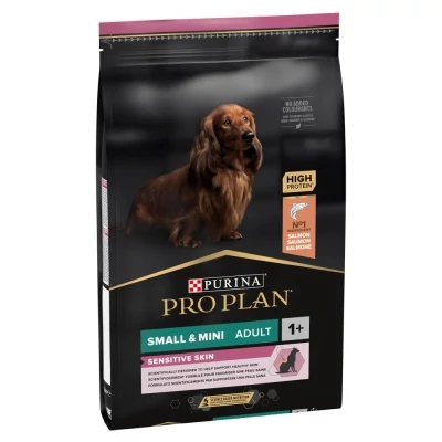 A PURINA® PRO PLAN® Small&Mini Adult Sensitive Skin kifejezetten az érzékeny bőrrel rendelkező felnőtt kutyák számára kifejlesztett száraz kutyaeledel.