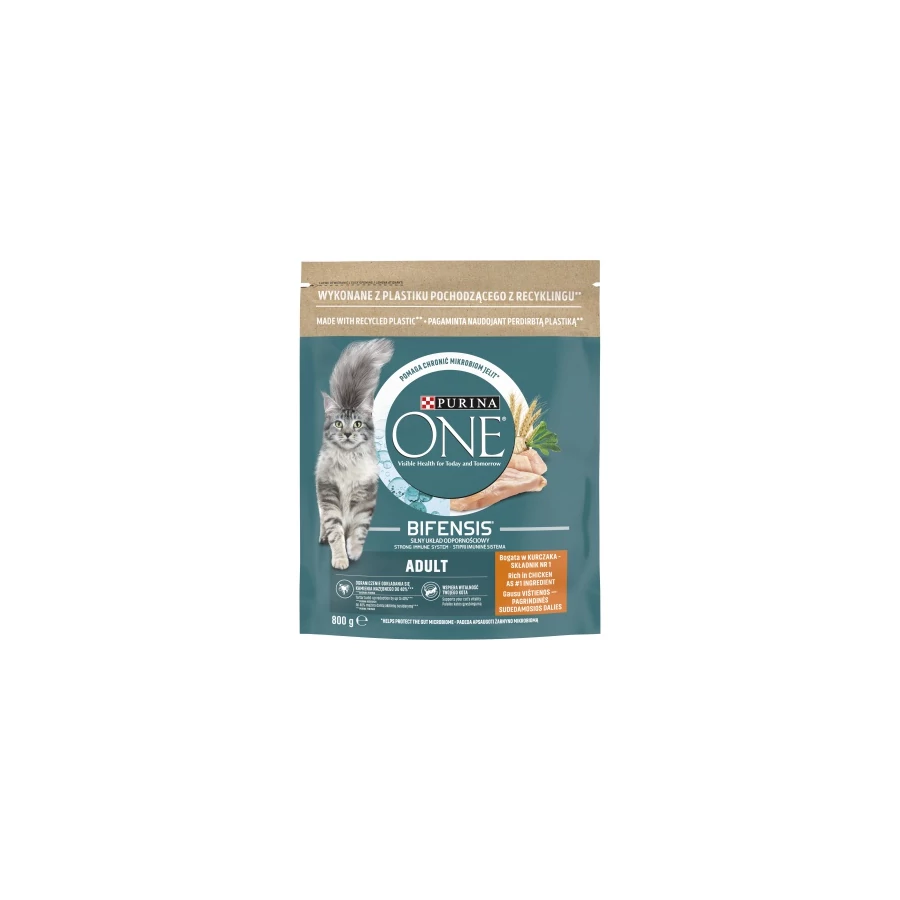Látható egészség most és a jövőben is. A Purina ONE Adult az 1 éves és idősebb macskák táplálási igényei szerint lett megalkotva. A kiegyensúlyozott bélmikrobiom alapvető fontosságú macskád megfelelő egészségéhez, hiszen közvetlen hatása van az immunrendszerére. A mikrobiom olyan ökoszisztéma, amely minden macskában egyedi, bélben élő mikroorganizmusok billióiból áll. A mikroorganizmusok egyensúlya fontos a macska emésztőrendszere egészségének, immunrendszerének és összességében a jóllétének kedvező befolyásolásához.