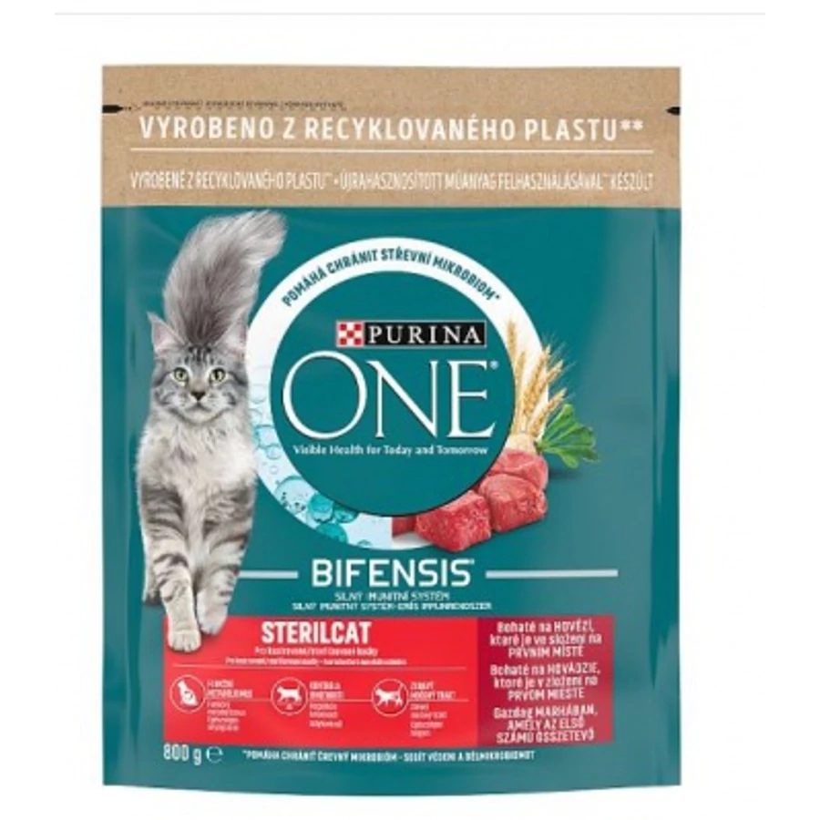 Látható egészség most és a jövőben is Purina One® Sterilcat formulájának az ivartalanított macskák igényeihez igazított tápanyagprofilja van. A kiegyensúlyozott bélmikrobiom alapvető fontosságú macskája megfelelő egészségéhez. Közvetlen hatása van a macska immunrendszerére. A mikrobiom olyan ökoszisztéma, amely minden macskában egyedi, bélben élő mikroorganizmusok billióiból áll. A mikroorganizmusok egyensúlya fontos a macska emésztőrendszere egészségének, immunrendszerének és összességében a jóllétének kedvező befolyásolásához. Purina One® Bifensis® táplálékformula jótékony hatású baktériumot tartalmaz: ez a lactobacillus, amely tudományosan bizonyítottan kívül-belül erősíti macskája immunrendszerét, és segít védeni az egészséges bélmikrobiomot.