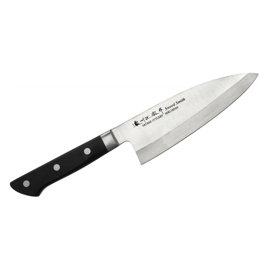 Egy olyan kést keres, amely a halak és húsok feldolgozását mesterfokra emeli? A Satake 803-694 Satoru Deba japán konyhakés a tradicionális japán kézművesség és a modern technológia találkozásából született. Ez a kés kiváló választás halak filézéséhez és feldolgozásához, miközben a hús szerkezetének megőrzésére is tökéletesen alkalmas. A 16,4 cm hosszúságú pengével könnyedén vághatja át a halcsontokat vagy bonthatja a baromfit, miközben a penge kialakítása lehetővé teszi a precíz és gyors vágást, akár szűk helyeken is. Kiváló minőségű rozsdamentes acél penge A penge anyaga AUS-8A rozsdamentes acél, amely tartós élességet és kiemelkedő korrózióállóságot biztosít. Az 58-59 HRC keménységű acél hosszú élettartamot és könnyű karbantarthatóságot garantál. A 2,9 mm vastagságú penge különösen vastag és erős, amely megfelelő stabilitást nyújt még a nagyobb erőhatással végzett vágásokhoz is. Ezáltal a Deba kés alkalmas arra, hogy akár keményebb csontokat is könnyedén átvágjon, miközben a penge egyoldalas kialakítása segíti a pontos és irányítható vágásokat. A penge szélessége 5,1 cm, amely tovább növeli a stabilitást, és lehetővé teszi, hogy még a nagyobb halakat is könnyedén feldolgozza. Az éles hegy és a vastag penge kombinációja segít az olyan precíziós műveletekben, mint a csontozás vagy a bőr leválasztása. Ergonomikus és tartós markolat A kés markolata kemény műanyag laminátumból készült, amely tartós és ellenáll a nedvességnek. Ez nemcsak praktikus, de a kézbe is kényelmesen illeszkedik, így biztos fogást nyújt még nedves körülmények között is. A 29,8 cm teljes hosszúságú kés súlya mindössze 215 g, így könnyen manőverezhető, miközben a masszív pengének köszönhetően nagy erőt képes kifejteni minimális nyomás mellett. A Deba kés hagyományai A Deba kés története évszázadokra nyúlik vissza a japán konyhaművészetben, és a mai napig az egyik legfontosabb eszköz a halak és húsok feldolgozásában. A ""Deba"" név jelentése ""kifelé vágni"", ami utal a kés alapvető használatára: a hús és csont elválasztására. Eredete a Kamakura-korszakig (1185-1333) nyúlik vissza, amikor a japán kézművesek elkezdték tökéletesíteni a halak és más alapanyagok feldolgozásához szükséges eszközöket. A Deba kés egyoldalas élezése a precíz vágás érdekében készült, amely lehetővé teszi a hús könnyed elválasztását a csonttól. Ezt a technikát évszázadokon át használták a halpiacokon és háztartásokban egyaránt, és a Deba kés a mai napig elengedhetetlen eszköz a japán konyhában. Sokoldalú konyhai eszköz A Satake Satoru Deba kés nemcsak halak feldolgozására alkalmas, hanem ideális baromfi bontásához, húsok darabolásához vagy akár zöldségek aprításához is. Az erős, vastag penge és az éles hegy kiválóan teljesít a különböző konyhai feladatok során, miközben az egyoldalas él biztosítja, hogy minden vágás pontos és tiszta legyen. Mind a profi szakácsok, mind a lelkes otthoni szakácsok számára remek választás, akik szeretnék tökéletesíteni vágási technikáikat. Szerezze be a Satake Satoru Deba kést, és tapasztalja meg a japán kézművesség nyújtotta precíziós vágások élményét a saját konyhájában!