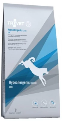 TROVET Hypoallergenic Diet Lamb LRD – Bárányos és rizses hypoallergén száraztáp érzékeny kutyák számára természetes antioxidánsokkalA táplálékkal szembeni  túlérzékenység azt jelenti hogy a táplálék valamely összetevője a szervezetben túlzottan erős, általában negatív reakciót vált ki. Ha egy táplálék összetevővel szembeni reakció kialakul, általában az állat egész életén keresztül fennmarad.A tünetek általában nem jellegzetes bőrelváltozások  (kipirultság, viszketés) vagy emésztőszervi tünetek formájában jelentkeznek.(hasmenés, hányás). Szerencsére könnyen kezelhetők olyan speciális diétás eledellel, mely nem tartalmazza a túlérzékenységet kiváltó összetevőt. A táplálék intolerancia okának felderítésére alkalmazzuk  az úgynevezett eliminációs diétát.Ez azt jelenti, hogy a kutya néhány (6-8)héten át csak olyan tápot ehet, amelyben csak egyféle  fehérje és egyféle szénhidrát komponens szerepel, mégpedig olyan, mely nagyon ritkán okoz túlérzékenységi reakciót, és amellyel az állat korábban nem találkozhatott.  Amikor  a tünetek javulni kezdenek vagy teljesen eltűnnek, akkor állapíthatjuk meg hogy táplálék intoleranciáról van szó. A biztos eredmény érdekében egyszeri alkalommal vissza kellene térni a régi eredeti tápra, (provokációs teszt) hogy megbizonyosodjunk, tényleg az okozta a túlérzékenységet.A tulajdonosok azonban sokszor nem teszik ezt meg, hiszen örülnek, hogy a diéta hatására a tünetek elmúltak.A  TROVET  nagy választékban állit elő kiváló minőségű hipoallergén tápokat. Mindegyik csak egyféle fehérjét és egyféle szénhidrátot tartalmaz. Mindezen túl olyan speciális csak növényi  eredetű fehérjét tartalmazó táp is rendelkezésre áll, mellyel szemben minimális az esély a táplálék túlérzékenység kialakulására. Beltartalmi értékek:Nyers fehérje 20.00%, Nyers zsír 16.00%, Nyers Rost 1.00%, Nyers hamu 7.00%,Nedvességtartalom 9.00%, Kalcium 1.00%, Foszfor 0.90%, Nátrium 0.30%, Kálium 0.50%, A vit. 20000IE/kg, D3 vitamin 2500IE/kg, E vit. 150mg/kgMetabolikus energia:15.5MJ/kg