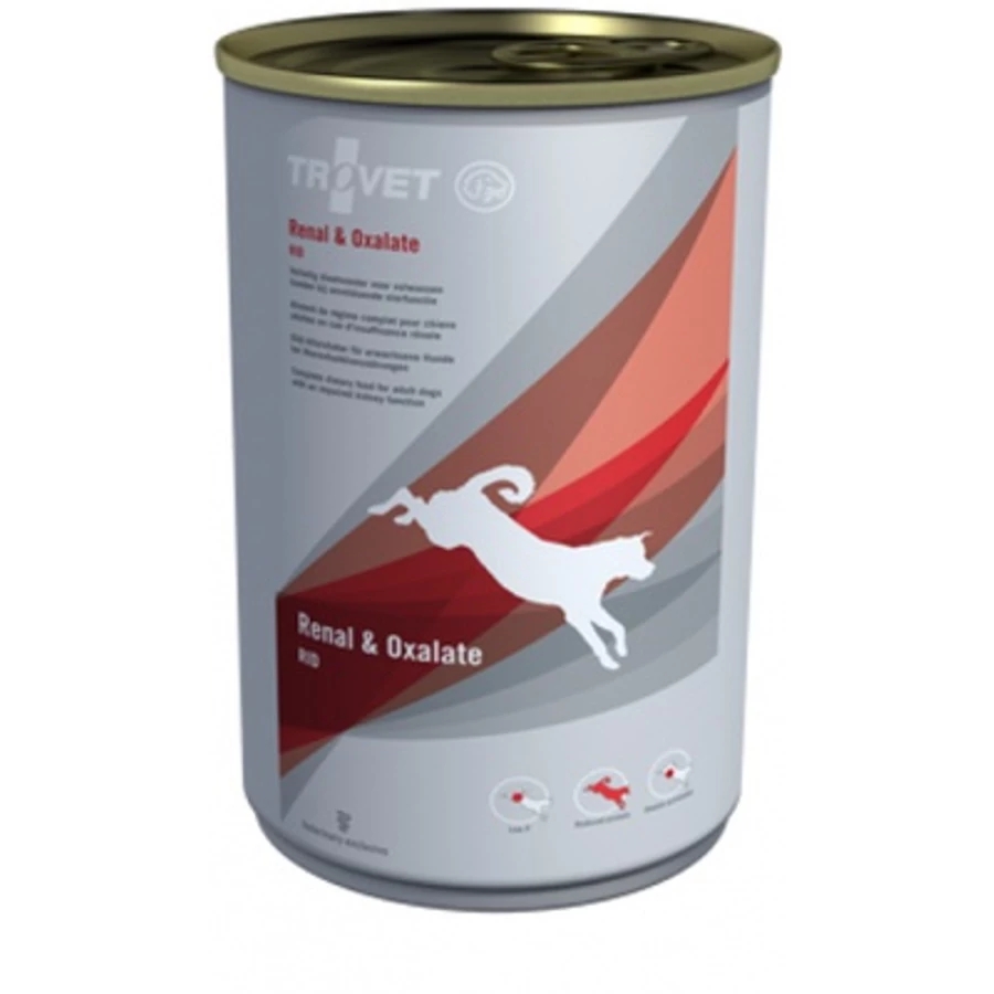 TROVET Renal & Oxalate Diet (RID) – Teljes értékű, vesebetegségekben szenvedő kutyák részére kifejlesztett konzervtápA vesék két fő funkciója a szűrő és kiválasztó funkció, melyek során a szervezet számára feleslegessé, sőt károssá váló salakanyagokat (fehérje bomlástermékeket, foszfátokat) a vérből kiszűri és eltávolítja, valamint a fontos vitaminokat és ásványi sókat visszatartja. Ha a kiválasztó funkció károsodik, vagy megszűnik, az a szervezet mérgezéséhez vezet. A szűrő funkció károsodása esetén a szervezet fontos sókat és tápanyagokat, valamint folyadékot veszít. A súlyos vesekárosodás tünetei már csak akkor jelentkeznek, amikor a vese állományának több mint 75%-a már károsodott. Az első tünetek jelentkezésekor (megemelkedett folyadékfogyasztás) minél hamarabb forduljunk állatorvoshoz.A TROVET RENAL & OXALATE csökkentett fehérjetartalma révén tehermentesíti a veséket, ezek a fehérjék azonban magas biológiai értékűek, tehát fedezik a szervezet aminosav igényét. A jelentősen lecsökkentett foszformennyiség elősegíti a veseműködés további romlásának megelőzését. Az ásványi anyagok, vitaminok mennyisége szintén a károsodott veseműködésű állatok megváltozott igényeihez igazított. Kálium citrátot tartalmaz, így megelőzi a vizelet túlzott savasodását, ezáltal az oxalát kristályok képződését gátolja. Használható urát, cisztin és oxalátképződés megelőzésére, és minden olyan esetben ahol a vizelet lúgosítására van szükség (pH- csökkentés).Beltartalmi értékek:Nyers fehérje 6.00%, Nyers zsír 8.00%, Nyers Rost 0.40%, Nyers hamu 1.30%, Kalcium 0.14%, Foszfor 0.008%, Nátrium 0.16%, Kálium 0.21%, A vit. 1200IE/kg, D3 vitamin 150IE/kg, E vit. 100mg/kgMetabolikus energia:4.90MJ/kg