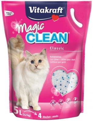 Ötlet az átálláshoz: Szükség esetén a szoktatás során a korábbi almot (helyezze alulra) keverje a Magic Clean termékkel (helyezze felülre).