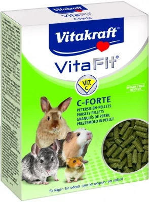 Magas C-vitamin tartalmú kiegészítő állateledel rágcsálók számára, amely támogatja az ellenálló képességet.