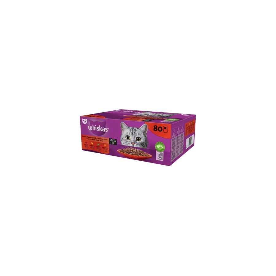A napi szükséglet 3 kg-os macska esetén 3 - 3½ tasak, 4 kg-os macska esetén 3½ - 4 tasak, 5 kg-os macska esetén 4 - 4½ tasak. 1 tasak 16 g WHISKAS® szárazeledellel helyettesíthető. Számolja a jutalomfalatokból származó kalóriát. Az etetési mennyiség kialakításakor vegye figyelembe macskája igényét. Hogyan? Látogasson el weboldalunkra. Kínáljon hozzá friss vizet. Szobahőmérsékleten tálalva a legfinomabb, felbontástól számítva 2 napig hűtve eltartható.
